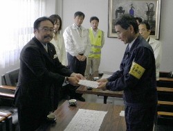 東日本大震災の復興支援のため、塩釜市へ支援金200万円を贈らせていただいたという私たちみなとみらいLCのホームページを見て、ドイツデュッセルドルフ カールシュタッドLC フランクメーザーLより、その時仲介をお願いした塩釜LC(志賀重信会長)へ1万ユーロの支援金を贈りたいとの運びとなりその贈呈式に出席するためクラブメンバーと塩釜へ同行させていただいた。